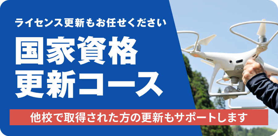 スカイ・ドリームは、航空法改正に順応したドローンスクールです。2022年度から航空法が大きく改正されましたが、当ドローンスクールはすべてのドローンライセンスに追従した国家資格を取得することができます。